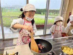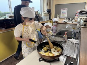 今まで、じゃがいもの皮むきなどを行ってきましたが、今回は全ての工程を保育士と行いました😊💖