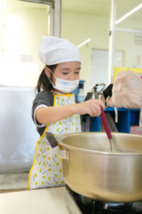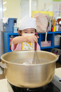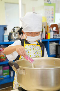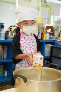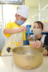 鍋にジュースやゼラチンなどを入れ、交代で混ぜたり容器にうつしたりとみんなで協力しながら作ることを楽しんでいましたよ☺️✨️