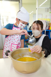 8月21日(木)にらいおん組さんがみかんゼリー作りをしました🍊