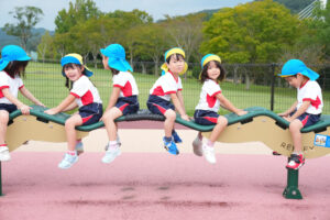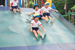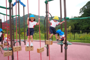 初めて見る遊具に興味津々でお友達と一緒に試行錯誤しながら遊んでいたくま組さんです🐻💕